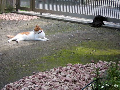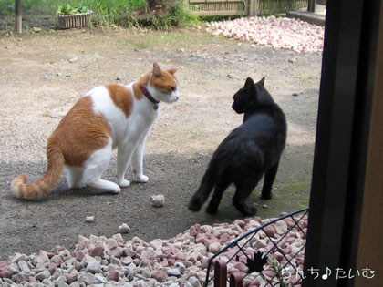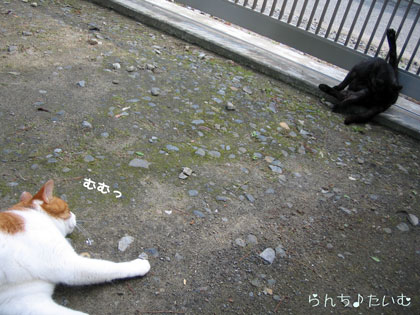 庭で蘭太とク~がケンカしそうな雰囲気になってました
