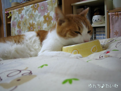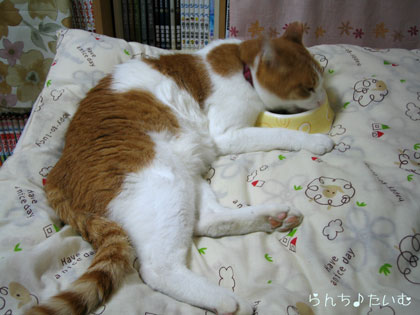 チャラララッチャラ~ 「ベッドで寝食い~~」 * ((ミ゚エ゚ミ)) ドラ○もん風に *