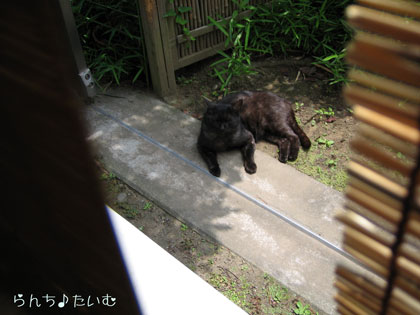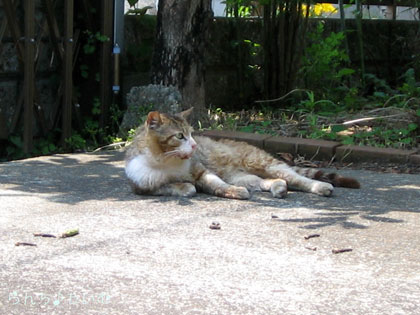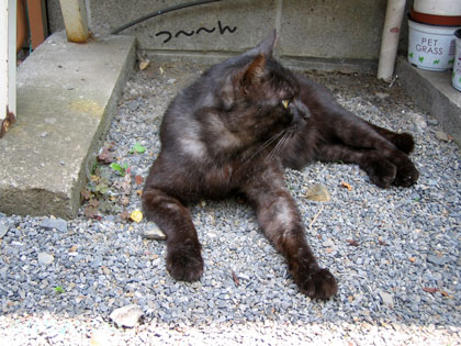 喧嘩を止められて 隣の庭でくつろぎ始めたネコタン 年齢不詳