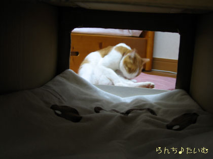 こんな感じで覗き込むとダンボール大好きなコは興奮してしまうんですね
