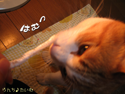 寝起きのランチにヒモを見せたら