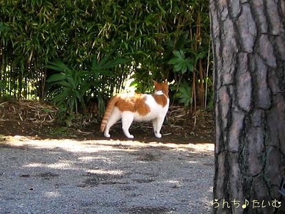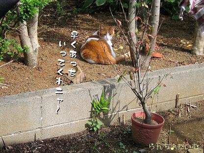 裏のお宅の庭で平らになってるヨ~ ┐( ̄ヘ ̄)┌ やれやれ