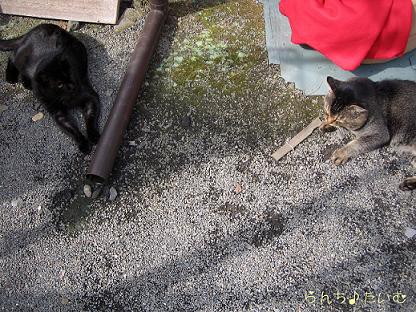 威嚇しながらも近くでくつろぐ外ニャンズ