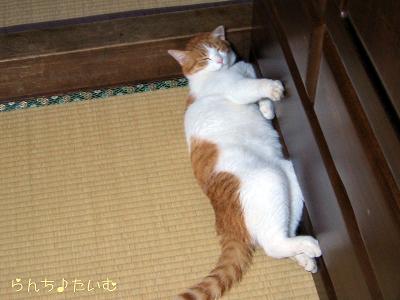 玄関で凹み気味のランチ君を発見
