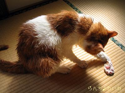 今日はネコもへばる程の暑い日だったせいか?おとなしくシャワーされる蘭太くん