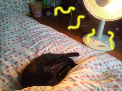 黒いコさん ハロゲン前でぬっくぬくぅ~