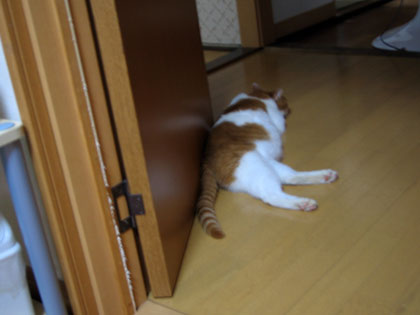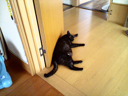 玄関はやや冷たい風が入ってくるから ネコには涼しいポイントなんですよね