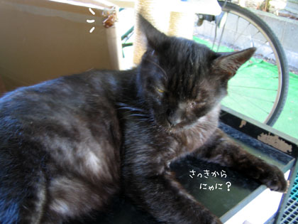 パシャパシャ写真を撮っててうるさかったのか目を覚ましたク~ちゃん