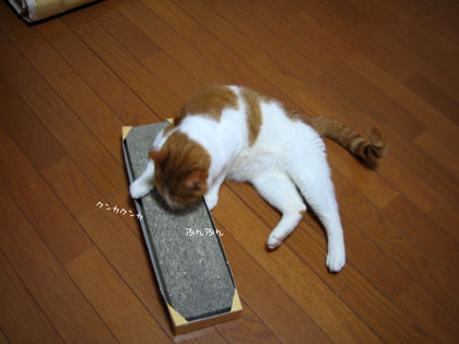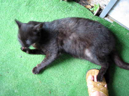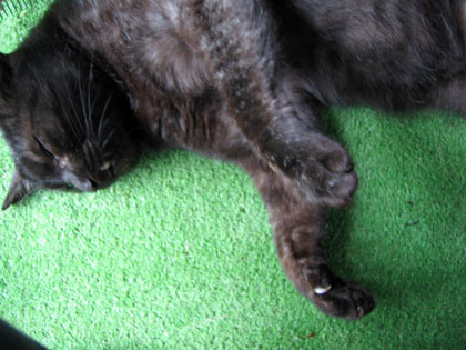 肉球部分は自分でナメナメ~ (後ろ足が私の上にのってるけどぉ