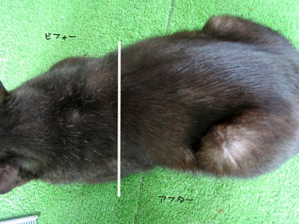 わかります?この違い! ブラッシングしたお尻部分の毛は艶々