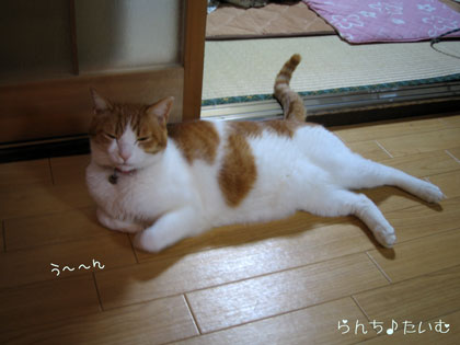 ゴハン食べてペロンとしてます (〃∇〃) ぽっ カワエエ