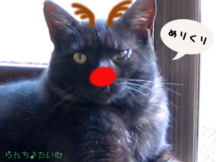 トナカイさんになってくれたクロスケ選手 ( ̄m ̄*)プッ