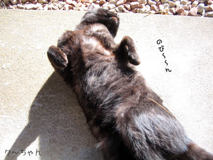 そこでク~ちゃんが日向ぼっこしてます